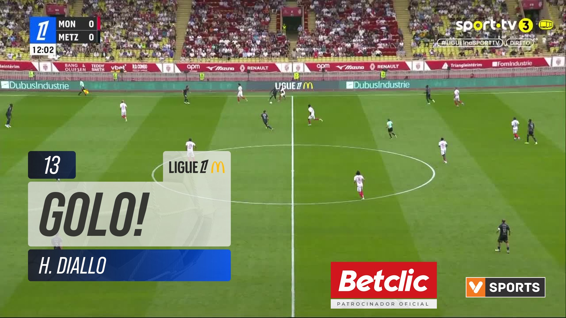 GOLO! Metz, H. Diallo aos 13', Monaco 0-1 Metz
